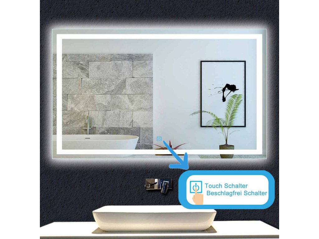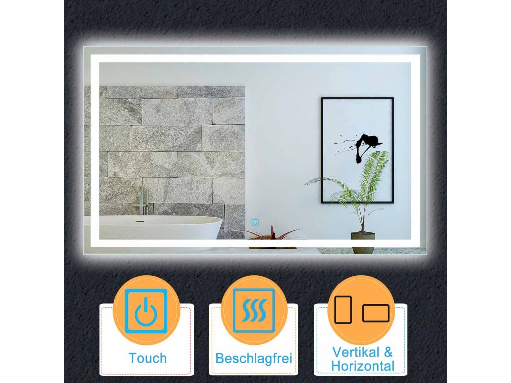Koupelnové zrcadlo s LED podsvícením pro příjemné osvětlení koupelny. Dlouhá životnost (cca 30 000 hodin) a nízká spotřeba jsou hlavními výhodami LED osvětlení. Zrcadlo je vybaveno dotykovým vypínač pro pohodlné ovládání a topnou fólií proti zamlžování.