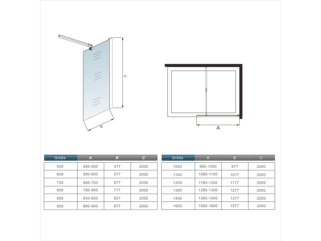 - stěnový profil pro upevnění skla na stěnu a zkracovatelná stabilizační vzpěra ve dvou rozměrech 90 a 140 cm nejsou součástí balení zástěny a je třeba přikoupit, naleznete v souvisejících produktech.