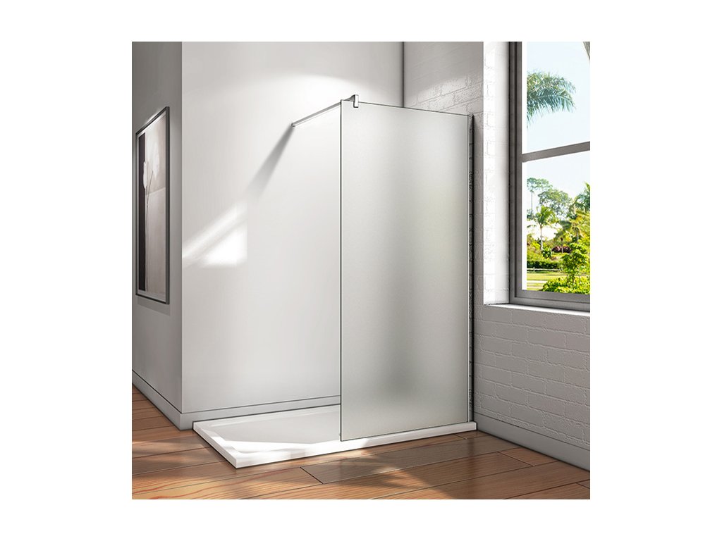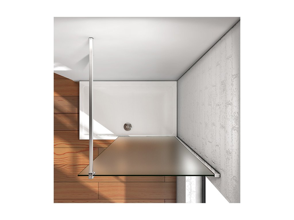 WALKY LINE MATT bezdveřové sprchové zástěny pro pohodlné sprchování ve volném prostoru odděleni 10mm sklem s matnou bezpečnostní folií. Stabilitu zajišťuje kolmá vzpěra, zkracovatelná dle potřeby v délkách 900mm a 1400mm.